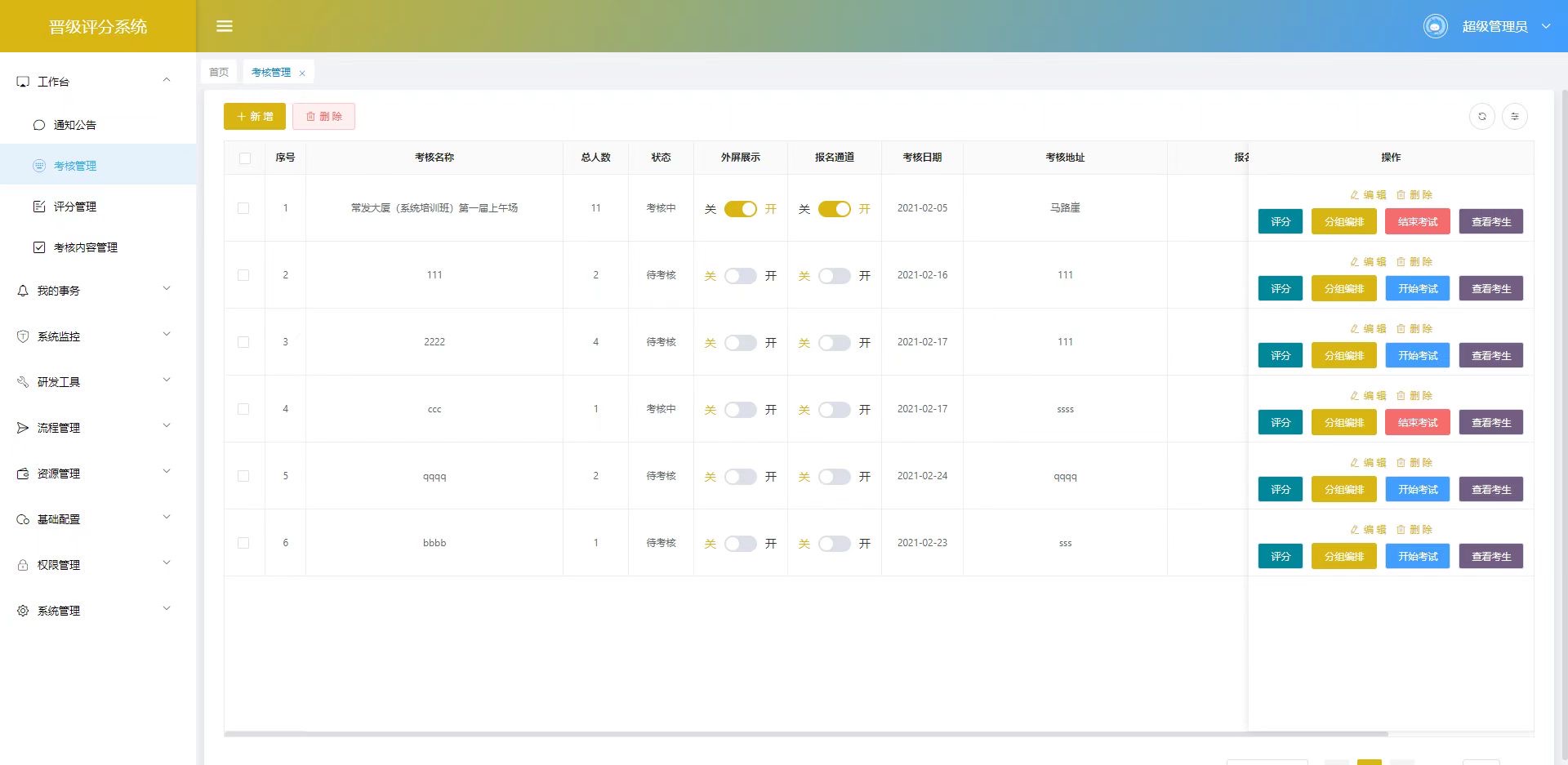 理论考试: 支持在线答题(选择题、判断题)或录入笔试成绩。